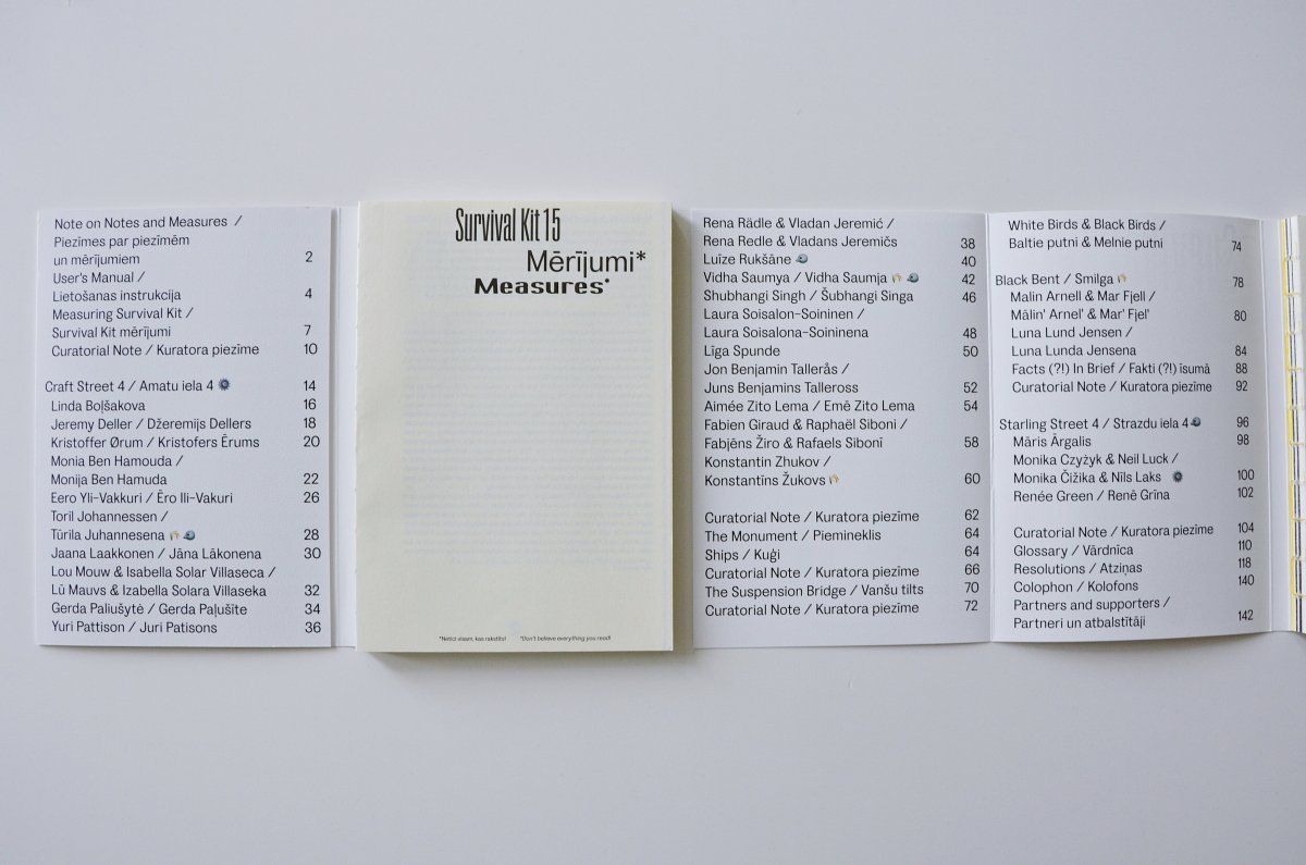 The catalogue of the international contemporary art festival Survival Kit 15 exhibition "Measures" is not just a guide to the exhibition.