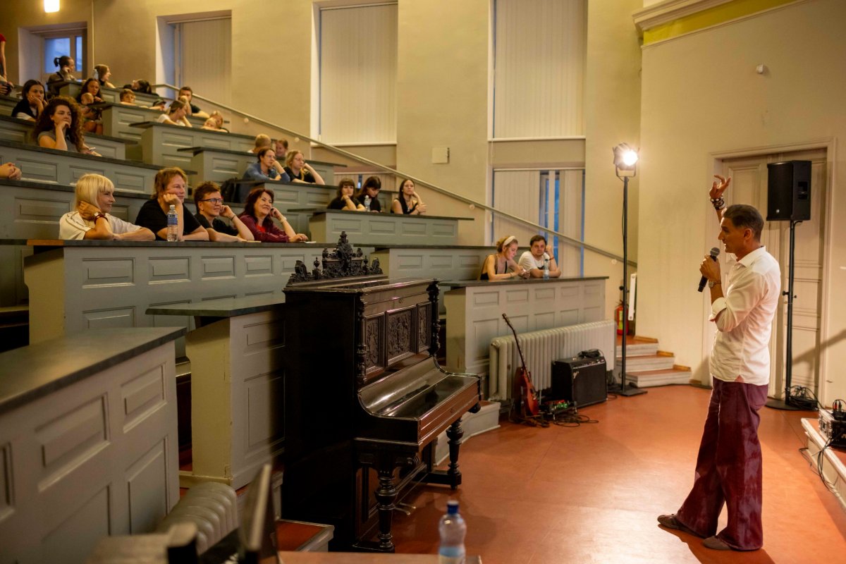 Klausīšanās seanss Listeance Viktora Timofejeva personālizstādē "Citi pasažieri" Latvijas Nacionālā mākslas muzeja 4. stāva izstāžu zālēs