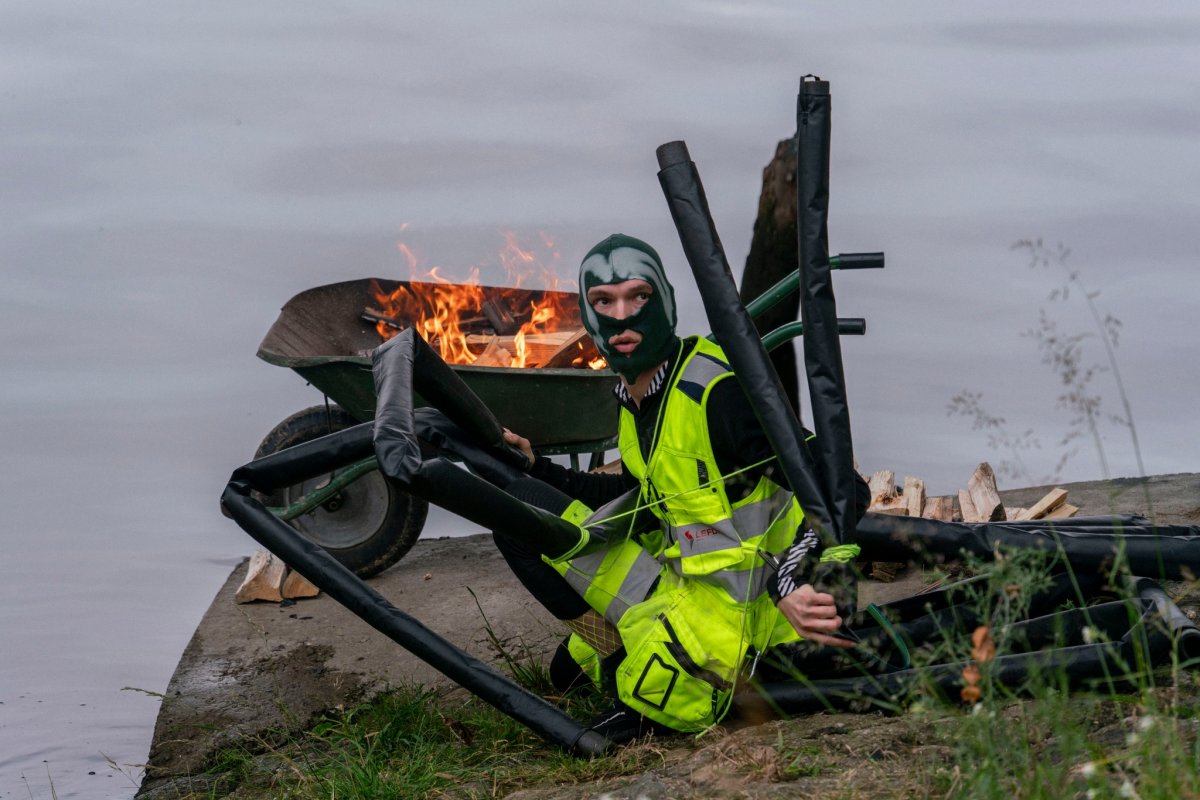 Atmosfērisks turpinājums leģendārās avangarda apvienības NSRD (Nebijušu sajūtu restaurēšanas darbnīca) dalībnieku – Jura Boiko, Hardija Lediņa un Imanta Žodžika – 80. gados aizsāktajam performatīvo pastaigu ciklam “Gājieni uz Bolderāju”.