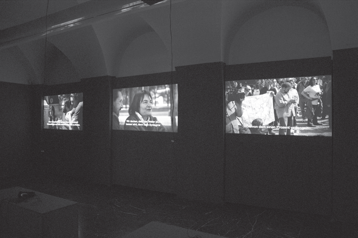 Instalācijas pamatā ir diskusijas, kas notikušas ar aktīvistiem no 15M kustības Madridē, Sintagmas laukuma kustības Atēnās un Occupy Wall Street kustības Ņujorkā. No jauna izspēlējot protesta kustību darba grupu formātu, četri līdz seši aktīvisti diskutē viens ar otru kameras priekšā. Diskusija skar organizatoriskus jautājumus, horizontālus lēmuma pieņemšanas procesus, kā arī to, kāda nozīme un funkcija ir publiskas telpas ieņemšanai un kā var notikt sociālas pārmaiņas. Filmas tika uzņemtas 2012. gada pavasarī – vietās, kur notika aktīvistu tikšanās un darba grupu sapulces.